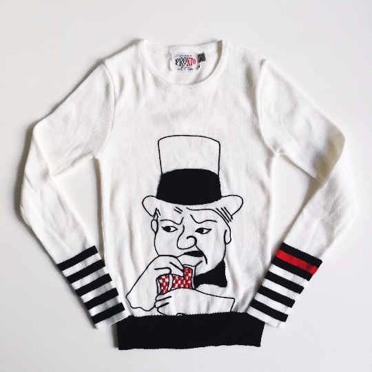 I stumbled upon this pair of acrylic Pronto novelty sweaters from the 70's that I found amusing, featuring Groucho Marx and W.C. Fields (both now available to purchase in the shop).